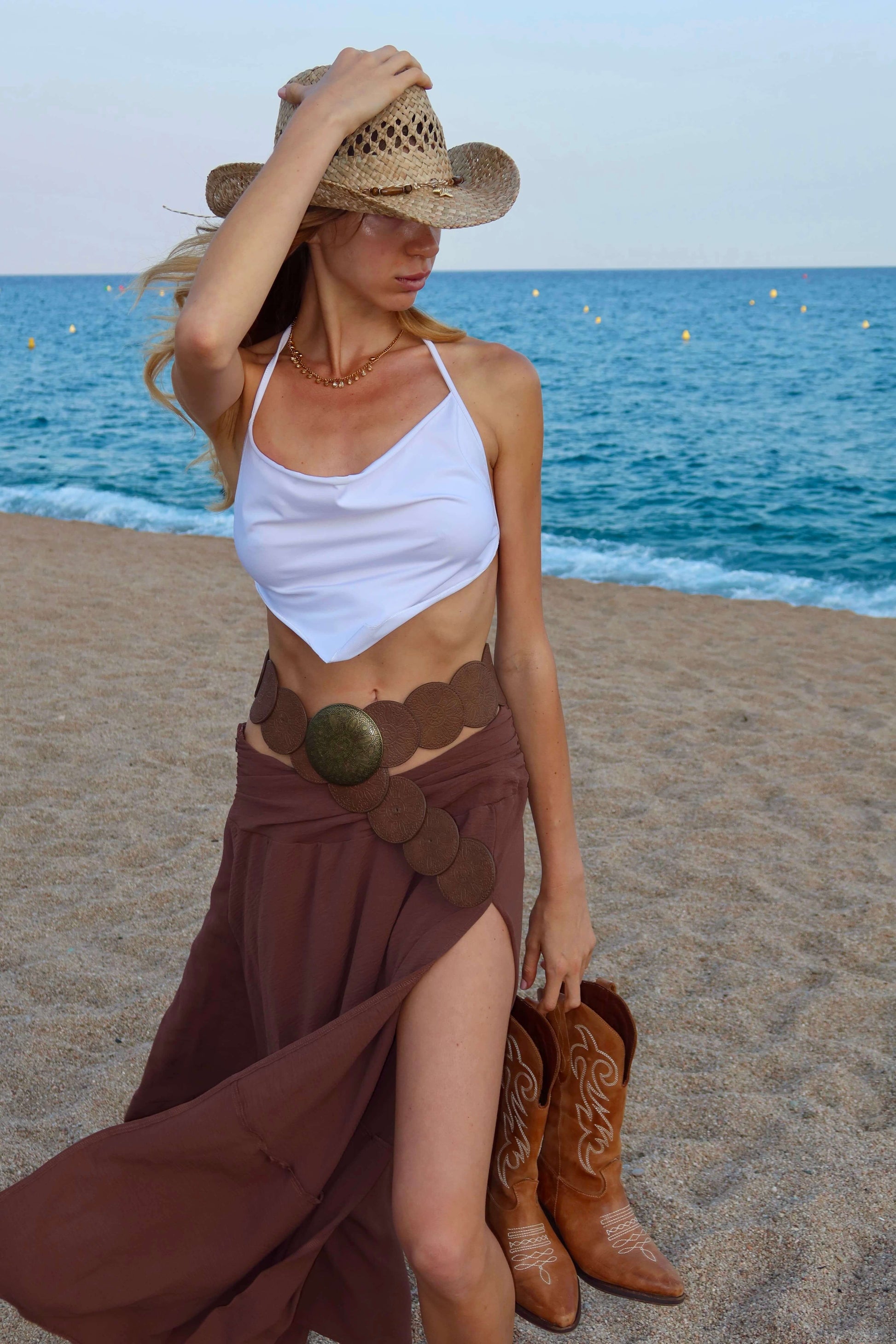 Su estrella dorada y tonos tierra evocan atardeceres cálidos y paisajes infinitos.